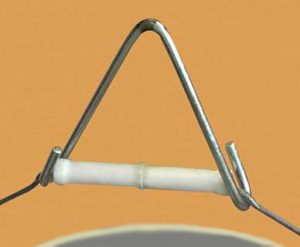 Insert the Catch-Dish from the long end of the Trigger-Rod and lock it at desired height using Catch-Dish-Lock by lightly pressing together two open ends, pass the Trigger-Rod thru the holes, and release.